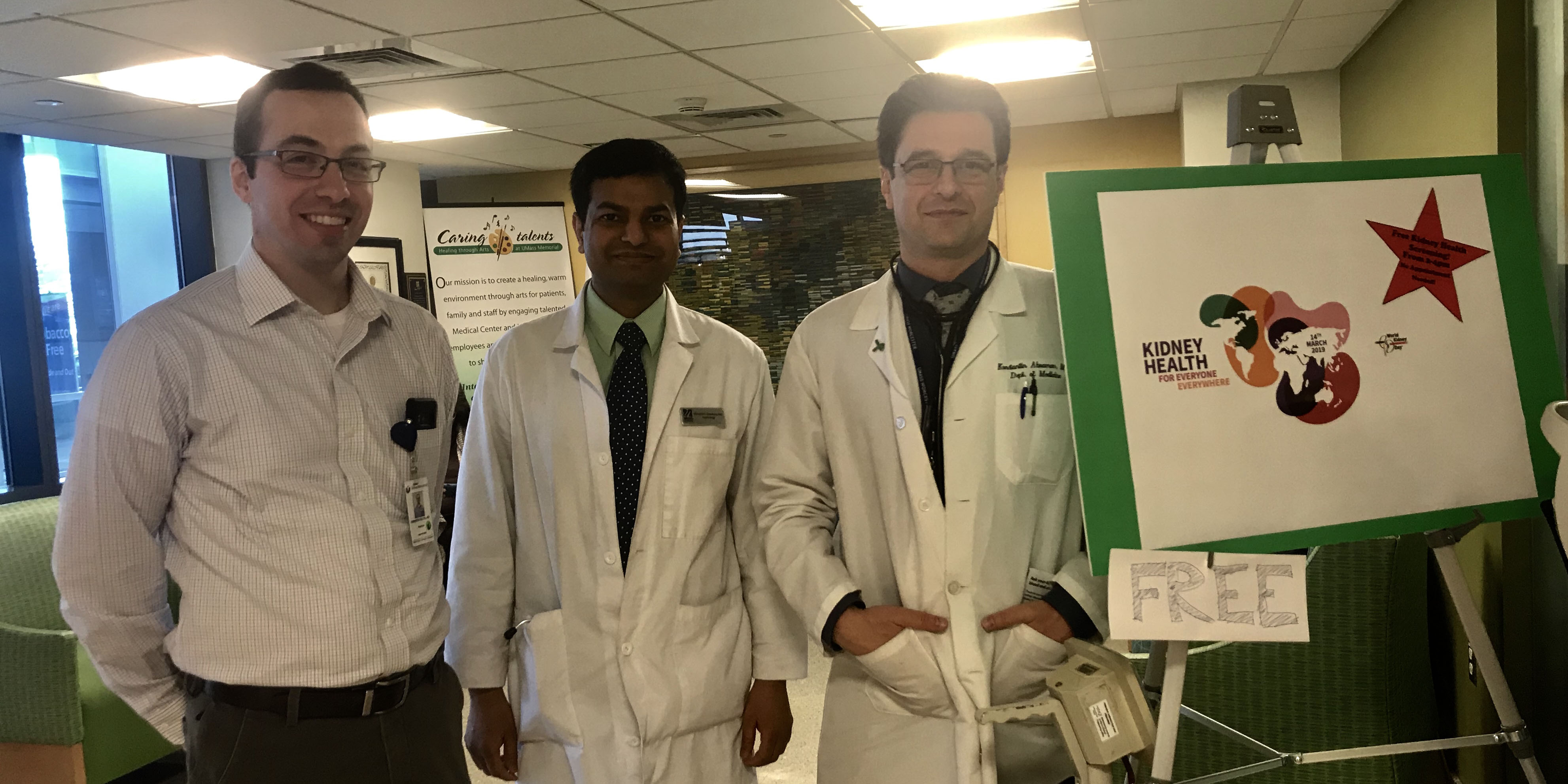 Every year renal fellows, staff and faculty conduct a free CKD screening event at UMass for general public.